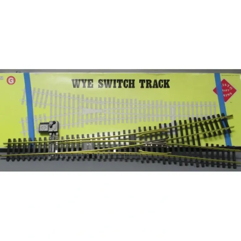 This is an Aristo-Craft 20345 #6 BRASS USA Style Wye Switch. Features include stainless steel rails, plastic ties, and a manual switch machine. It measures approximately 35 1/2 inches in length.
