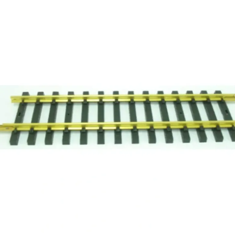 This is a section of Aristo-Craft 30030 US Style 1 Foot Straight Track. Aristo-Craft track is widely known for its outstanding quality, long-lasting durability, and most of all, affordability. Instead of being hollow, the rail in Aristo-Craft track is solid for strength and performance. Aristo-Craft’s brass rail has a very high percentage of copper insuring that conductivity of Aristo-Craft track is superlative. This brass rail also features a very low percentage of lead, greatly inhibiting oxidation. The Aristo-Craft Screw/Rail Joiner System is a pride of Aristo-Craft design. It provides terrific conductivity where normally conductivity is a problem? the junction. This means there is no need for messy conductive greases, soldering between joints, or rail clamps to get electrical performance.
