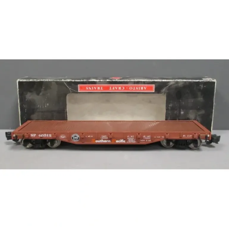 This is an Aristo-Craft 46312 G Gauge Southern Pacific Flatcar #46312 with Stakes.