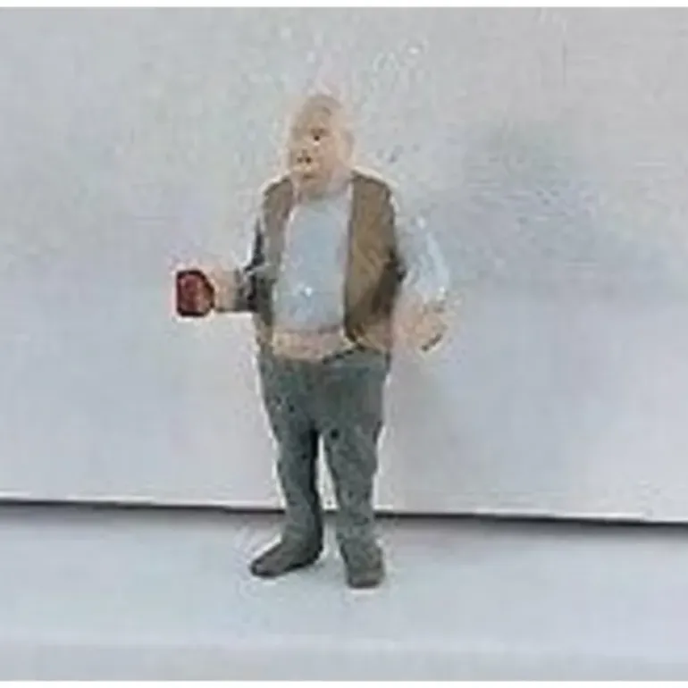 This is an Arttista 1263 Big Sloppy Man Pewter Figure for O scale layouts. Add realism to your layout by adding this great pewter figure, handpainted and made in the USA. You don’t want this sloppy man hanging outside your restaurant, send him over to the park with the rest of the hobos! . Colors may vary.