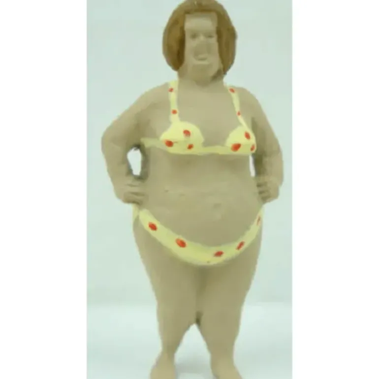 This is a Arttista 1296 Heavy Lady in a swimsuit Pewter Figure for O scale layouts. Add realism to your layout by adding this great pewter figure, handpainted and made in the USA. This big beautiful Woman is showing off her stuff and getting a tan near the waters on your layout. Colors may vary.