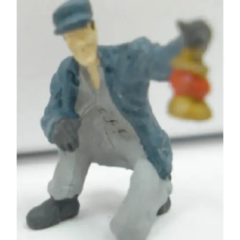 This is an Arttista 1305 Brakeman Stooping with Lantern Pewter Figure for O scale layouts. Add realism to your layout by adding this great pewter figure, handpainted and made in the USA. This brakeman will be stooping with his lantern signalling to your engineer. Colors may vary.