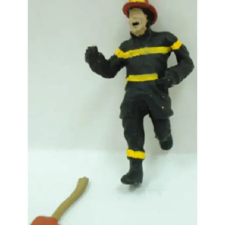 Arttista 1316 Running Firefighter with Ax Pewter Figure for O scale layouts. Add realism to your layout by adding this great pewter figure, handpainted and made in the USA. This fireman is always running to the rescue for the people on your layout.