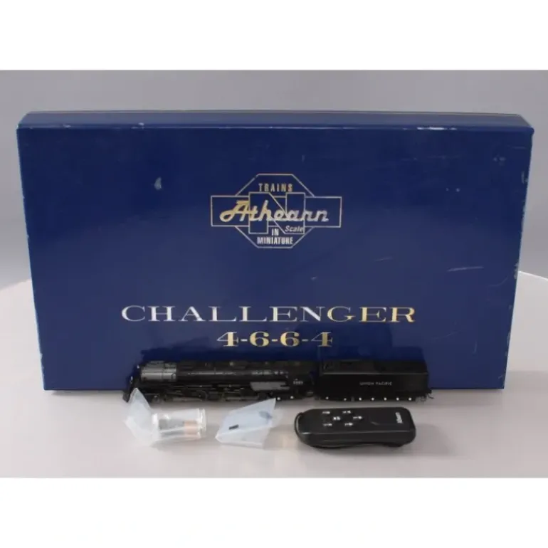This is an Athearn 11802 N Scale Union Pacific 4-6-6-4 with DCC & Sound #3985. Key Features: Boiler backhead with full detailing, Individually applied piping, valves, generators, etc., Correctly operating eccentric cranks, Headlights and number boards with directional light change, Tender light, Five pole skewed armature motor with dual flywheels, Pivoting front and rear engines for negotiating 11 radius curves – 15 radius recommended, Factory installed Soundtracks Tsunami dual-mode DC/DCC decoder with onboard sound, Blackened metal wheels, MicroTrains operating knuckle couplers installed.
