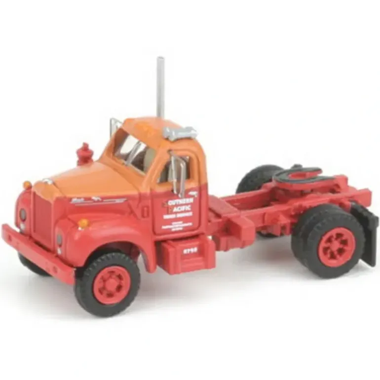This is an Athearn 12184 N Scale Southern Pacific Mack B Tractor. Key Features: Mack licensed model, Faithful 1/160th scale reproduction,Factory assembled with all detail parts applied,Razor sharp painting and printing,Clear molded windows,Rubber tires.