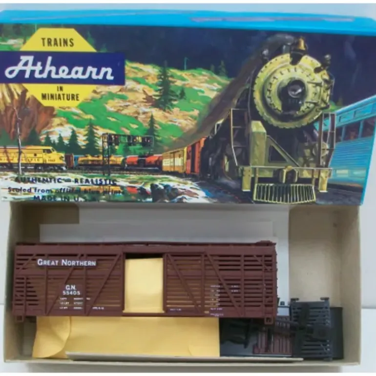 This is an Athearn 1771 HO Scale Great Northern 40′ Stock Car Kit.