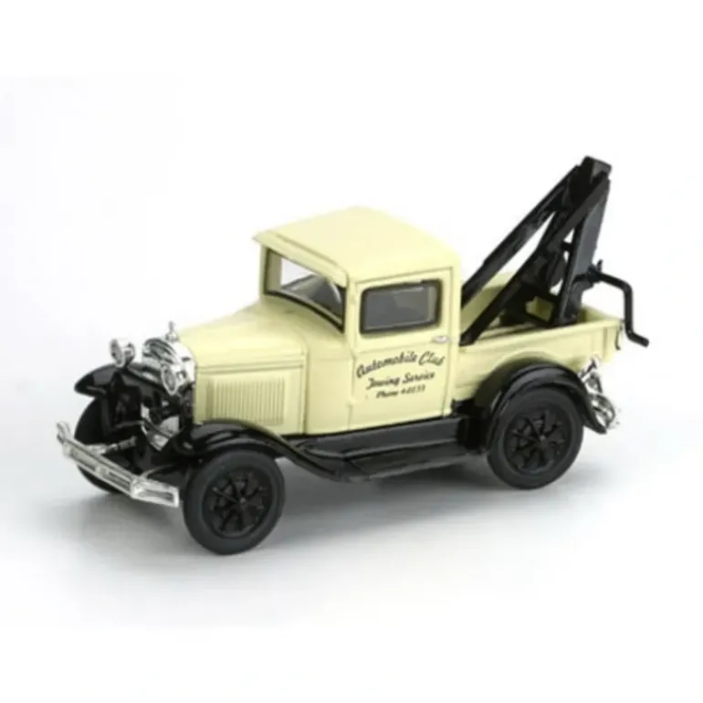This is an Athearn 26411 HO Scale Model A Tow Truck, Auto Club Towing. Key Features: Ford licensed model,New tow truck body,Many separately applied detail parts,Molded cab interior with separately applied steering wheel,Chrome bumper,Clear window glazing,Rubber tires.