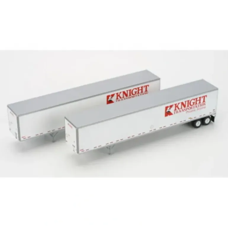 This is a Athearn 28404 Knight Transport 53′ Wabash Duraplate Trailers #2 (Set of 2). These trailers are fully assembled and ready for your layout. They feature upgraded former A-Line tooling, sliding rear bogies, and razor sharp painting and printing. Two trailers are in each package.