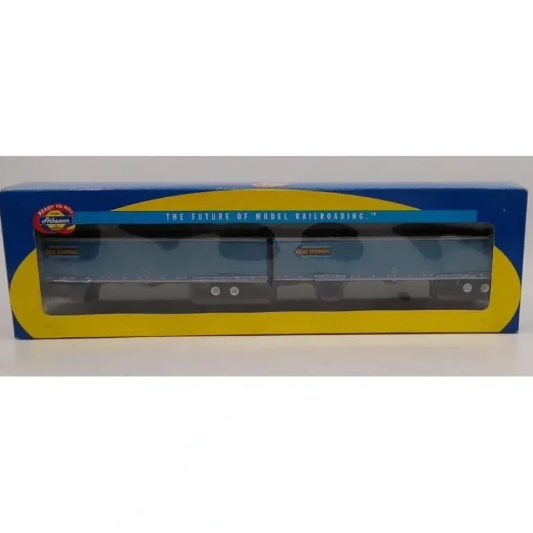 These trailers are fully assembled and ready for your layout. They feature upgraded former A-Line tooling, sliding rear bogies, and razor sharp painting and printing. Two trailers are in each package.