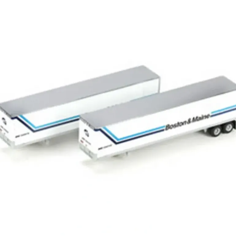 This is Athearn HO Scale Ready-to-Roll 45′ Fruehauf Z-Van Trailer 2-Pack – Boston & Maine #1. Features: Fully assembled and ready for your layout Smooth side body Sliding rear bogie Interchangeable landing gear (raised or lowered) Two trailers in each package Razor sharp painting and printing.