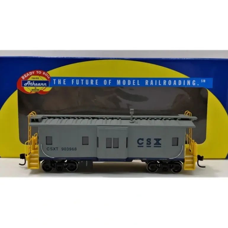 Here is an Athearn 74682 HO Scale CSX Bay Window Caboose #903968. This caboose is fully assembled and ready for your layout. It features razor sharp printing and painting, machined RP25 profile 33 inch metal wheels, full window glazing, and magnetically operated knuckle couplers.