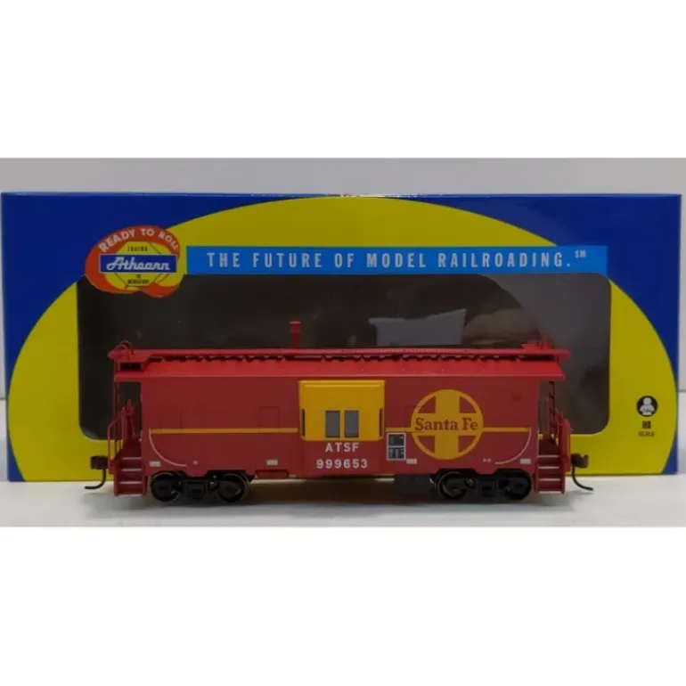Here is a Athearn 74742 HO Santa Fe RTR Bay Window Caboose #999653. This car comes fully assembled and ready for your layout. It features razor sharp painting and printing and is weighted for optimal performance. It has machined RP25 profile 33 inch metal wheels and McHenry scale knuckle spring couplers installed.