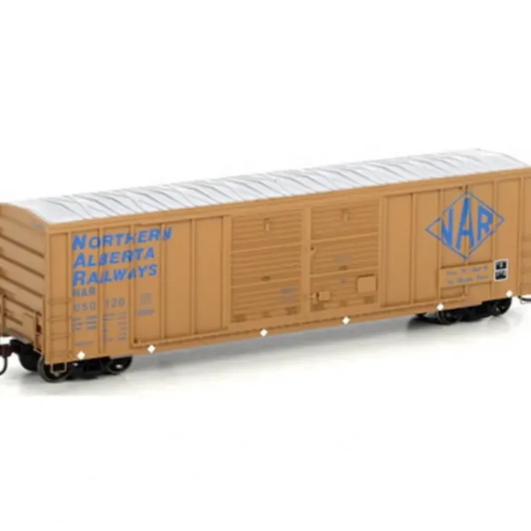 Here is an Athearn 87372 HO Scale Northern Alberta Railways 50′ FMC Centered Double Door Boxcar #050120. This boxcar comes fully assembled and ready for your layout. It is weighted for optimal perfomance and features machined RP25 profile 33 inch metal wheels and McHenry scale knuckle spring couplers.
