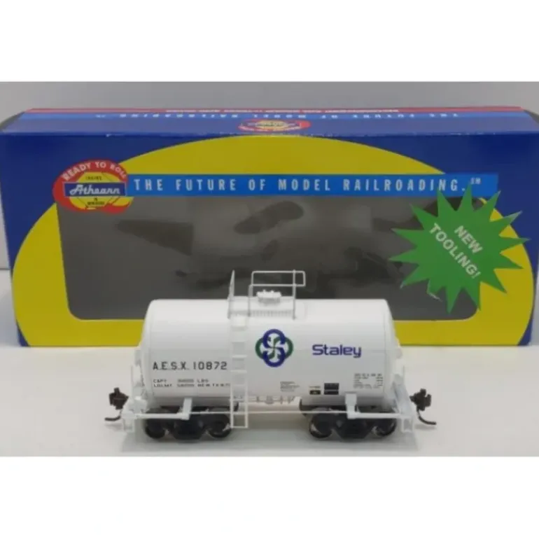 This is an Athearn 89101 HO AESX/Staley 30′ NACC 8,000 Gallon Beer Can Tank # 10872.
