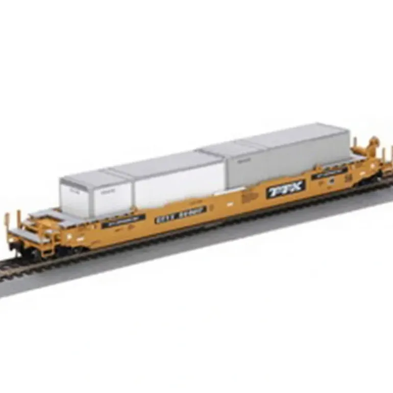 This car is fully assembled and ready for your layout. It includes 4 28 foot parcel containers and is weighted for optimal performance. it features machines RP25 profile 33 inch metal wheels and McHenry scale knuckle spring couplers.