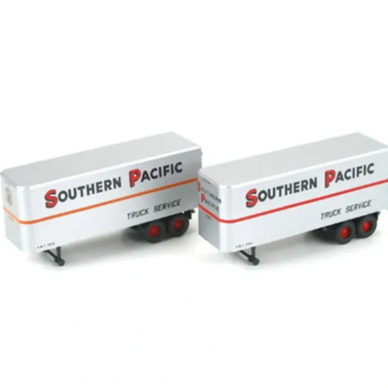 These trailers are constructed of durable plastic and are ready to run. They are HO scale and feature attractive decoration and accurate printing and lettering.