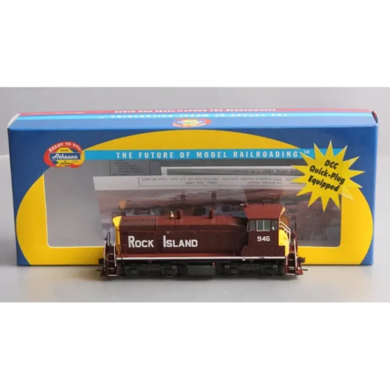 Here is a Athearn 95851 HO Rock Island SW1500 Diesel Locomotive #946. This locomotive comes fully assembled and ready for your layout. It features upgraded tooling, upgraded drive mechanism, separately applied wire grab irons, separately applied air tanks, Celcon handrails, DCC ready wiring harness, prototype specific detai