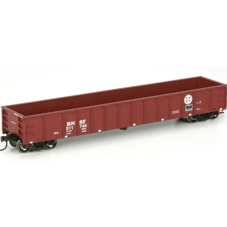 This is Athearn HO Scale Ready-to-Roll 52′ Mill Gondola – BNSF #511744. Features: Fully assembled and ready to operate Based on Model Die Casting tooling Upgrades include seperately applied grab irons and stirrup steps Machined RP25 profile metal wheels McHenry scale knuckle spring couplers installed. Additional Information: Open top cars, such as gondolas, have been a mainstay on railroads for decades as they are ideal for carrying large, bulky loads such as coil steel or scrap metal loaded by crane.