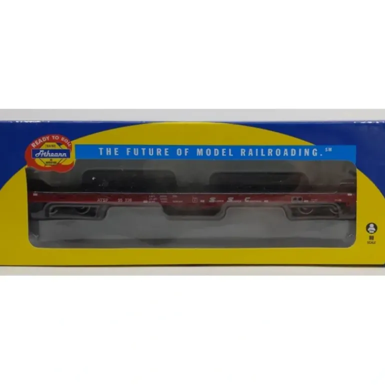 This is Athearn 97801 HO Scale Santa Fe Ready-to-Roll 60′ Flat Car #95336. Features: Fully assembled and ready for your layout Decks are painted to simulate weathered wood Weighted for optimal performance Machined RP25 profile 33 metal wheels McHenry scale knuckle spring couplers installed.