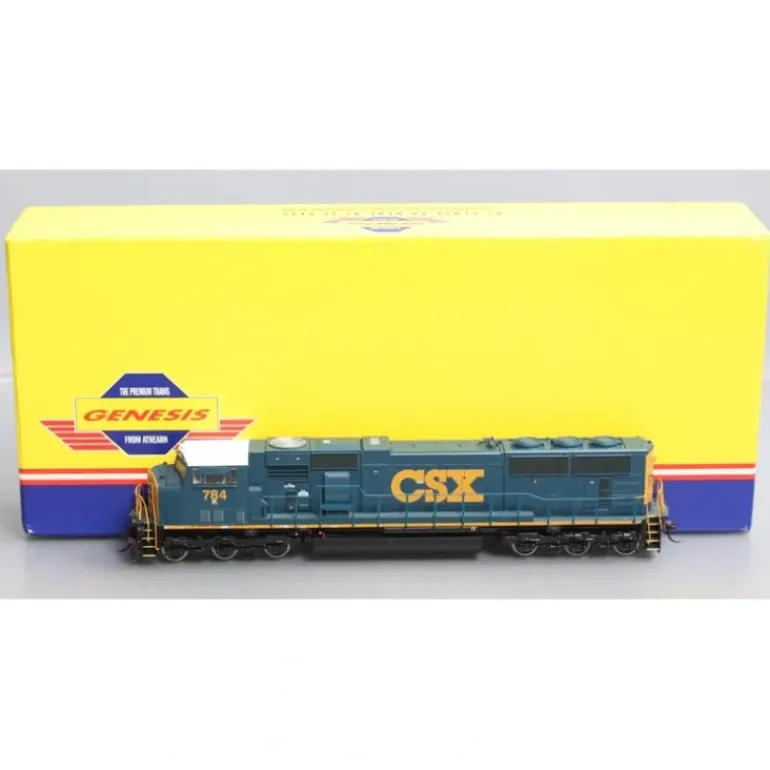 This is an Athearn G6410 HO Scale CSX (YN3) SD-70MAC Diesel Locomotive #784. This engine features a detailed plastic shell, die cast chassis, powerful motor, dual brass flywheels, knuckle couplers, plastic trucks, operating headlamp, and blackened metal wheels. It is DCC ready without a decoder.