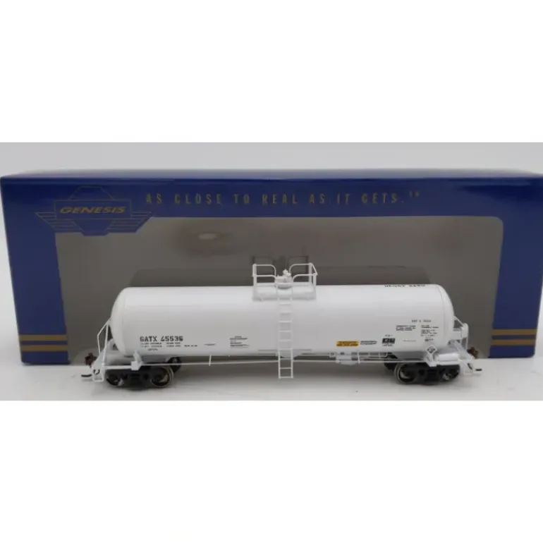 Here is a Athearn G96566 HO GATX 20K Gallon Tank Car #45536. This car features plastic construction, plastic trucks, metal wheels and axles, and knuckle couplers.