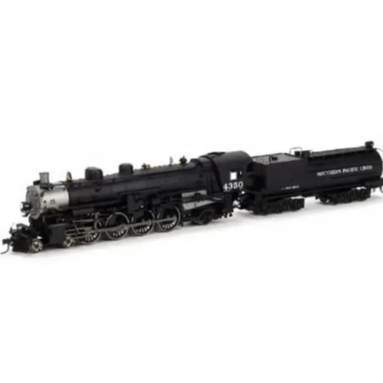 Here is a Athearn G97053 HO Southern Pacific 4-8-2 MT-4 Steam Loco #4350. This locomotive features a boiler backhead with printed gauges, individually applied piping, valves, generators, etc, adjustable cab windows and opening doors, cab hatches can be opened and closed, see through running boards, blackened metal wheels, 22 inch recommended minimum radius, front coupler pocket can be inserted to mount operating coupler, smoke unit ready with no soldering needed, McHenry scale knuckle spring couplers, DCC ready with 8 pin and 9 pin plug installed, and it includes a class 120-C-6 tender.