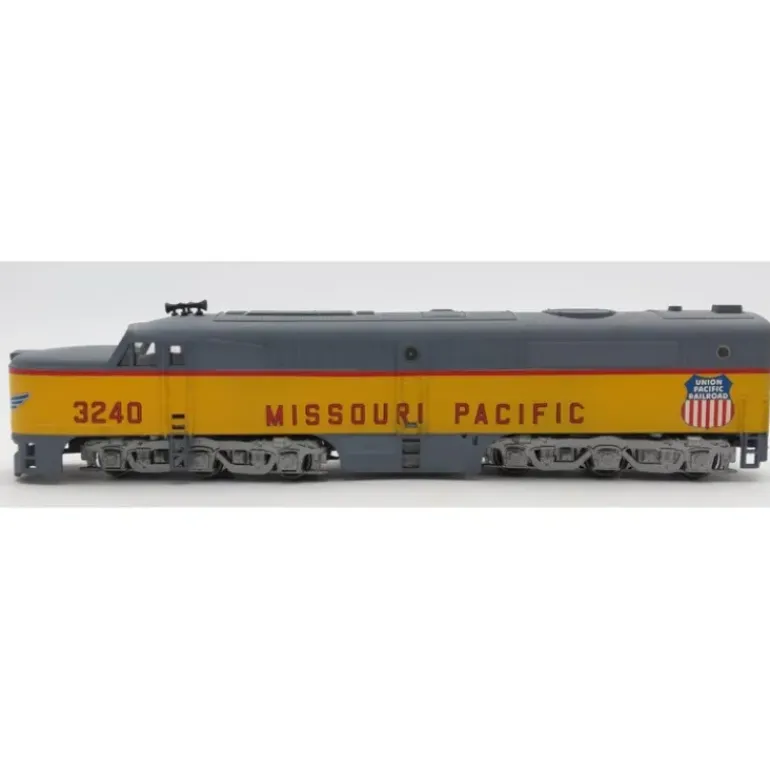 Here is a Athearn HO Missouri Pacific UP Diesel Locomotive #3240 – Custom. This car features plastic construction, a motor, plastic trucks, metal wheels and axles, and knuckle couplers.