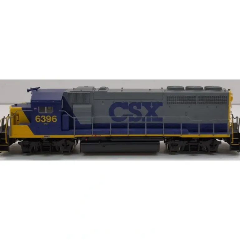 Here is an Atlas 10000407 HO CSX GP40-2 Phase I Diesel Locomotive w/DCC & Sound #6396. This locomotive features golden white LEDs, realistic die-cast underframe, five pole skewed armature motor with dual flywheels for optimum performance at all speeds, directional lighitng, factory equipped with AccuMate knuckle couplers, detailed cab interior with crew, separately installed scale windshield wipers, metal grab irons, and fine scale handrails, movable drop steps, walkway safety tread, coupler cut bars, multiple unit hoses and trainline hoses, and a snowplow.