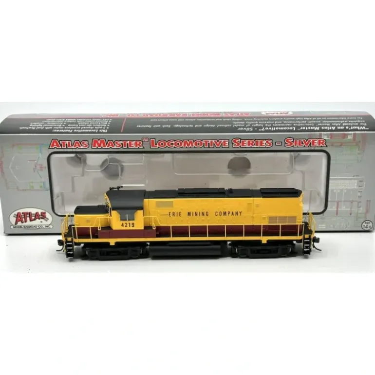 This locomotive features newly redesigned AAR type B truck sideframes with optional bearing covers, flat or step pilots used where appropriate, long hood with or without dynamic brake detail used where appropriate, a 3,100 gallon fuel tank, separately applied scale detail parts to include the windshield wipers, metal grab irons, coupler cut levers, multible unit hoses, train line hoses, fine scale handrails, drop steps, and cab sun shades, see through step detail on sill, etched metal radiator walkway, painted crew members, AccuMate knuckle couplers, five pole skewed armature motor with dual flywheels for optimum performance at all speeds, and directional lighting.