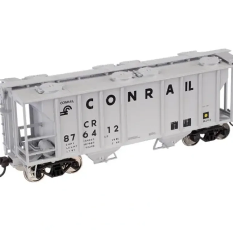 This is an Atlas 11286 Conrail PS2 Covered Hopper #879699. This car features plastic construction, plastic trucks, knuckle couplers, & metal wheels and axles.