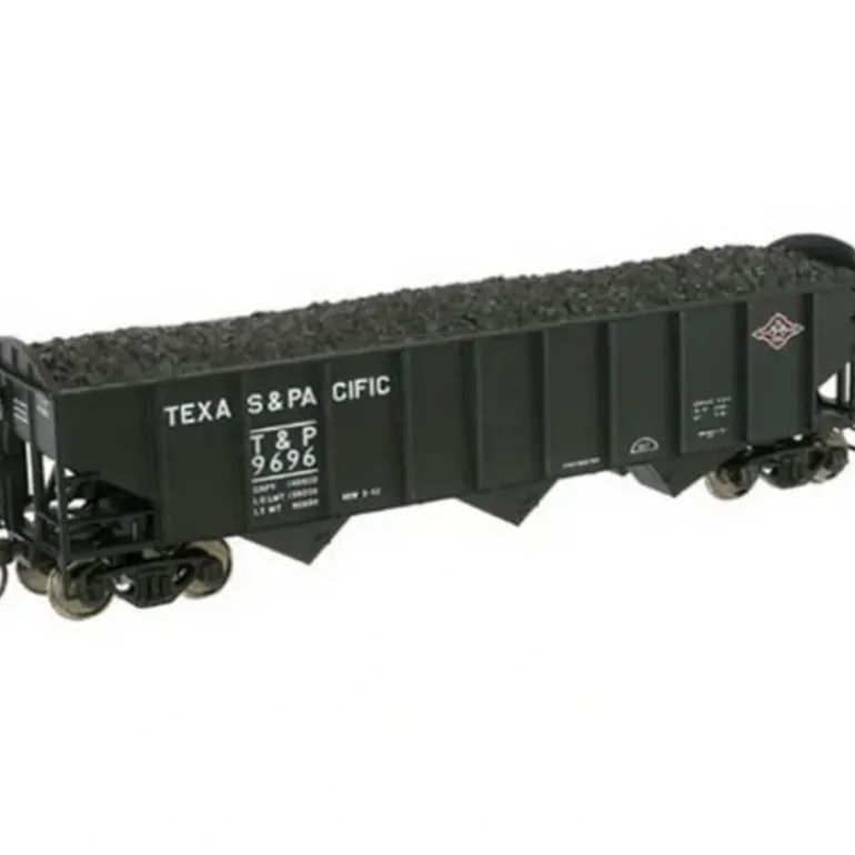 Here is an Atlas 1387 HO T&P 70T 3 Bay Hopper #9696. This hopper features true scale dimensions with accurate details, weighted detailed underframes, equipped with AccuMate knuckle couplers, trucks equipped with free rolling metal wheels, accurate painting and letting and a removable coal load.