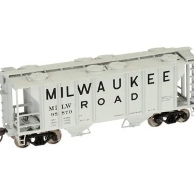 This hopper features 50 ton friction bearing or 70 ton roller bearing trucks as appropriate by road name, detailed brake gear, AccuMate couplers, and prototypical painting and printing.