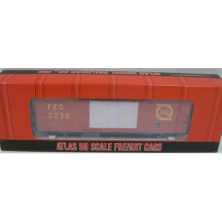 Here is an Atlas 1764-2 HO Scale Florida East Coast Evans Double Plug Door Box Car #5038.This boxcar features blackened metal wheels, 70 ton roller bearing trucks, a two piece underframe, air reservoir, end platforms, and AccuMate couplers.
