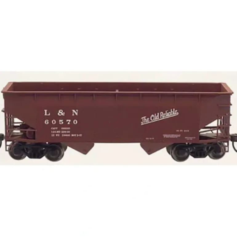 This hopper features accurate detailing, painting and lettering, AccuMate couplers, free-rolling, blackened metal wheels, screw attached coupler covers and coupler pockets designed to accept Kadee #5, Intermountain and McHenry couplers.
