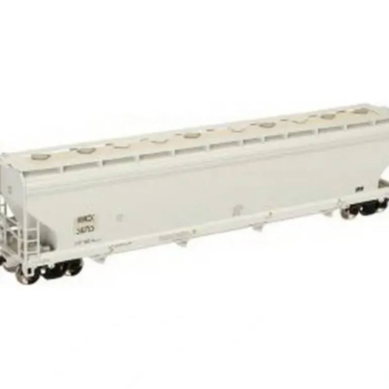 Here is a Atlas 20000285 HO Scale Huntsman ACF Plastic Hopper #36713. This car features plastic construction, plastic trucks, metal wheels and axles, and knuckle couplers.The 5701 cubic foot covered hopper was introduced in the early Seventies for transporting bulk plastic pellets. Since 1972 ACF has built nearly 15,000 cars. Most of these were acquired by private companies including leasing companies, chemical companies, oil companies, and plastics companies. The ACF 5701 grain hopper is similar to its 5701 plastics relative except it is equipped with continuous loading hatches and gravity outlets. The larger size was needed to transport lower density grain-related and similar agricultural products (e.g. feed, sunflower seeds etc) more efficiently than the then standard 4650, 4740, and 4750 cubic foot capacity grain hoppers. These were originally built as 263,000 GRL (Gross Rail Loading) cars but many have recently been rebuilt into the higher 286,000