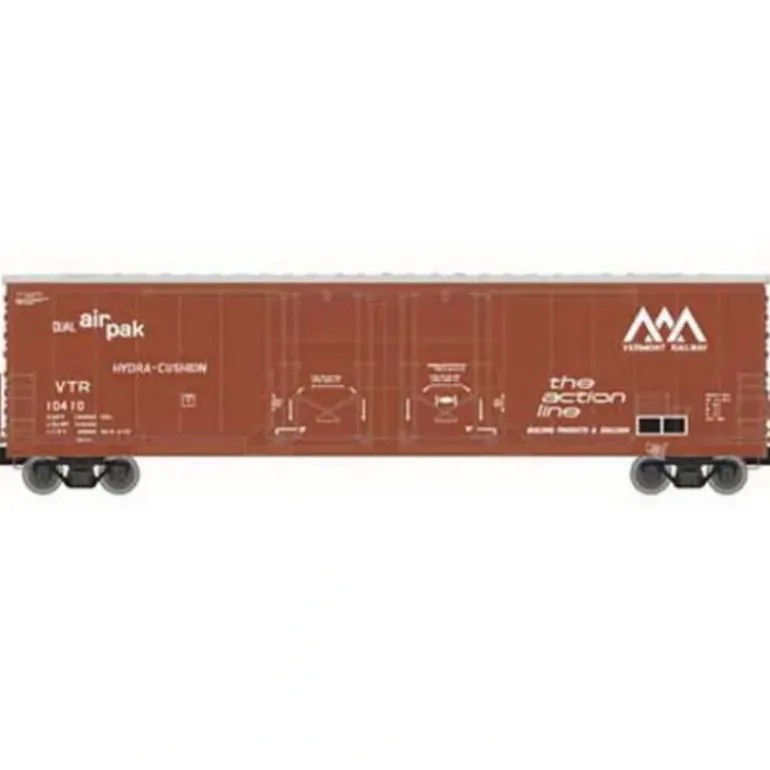 This car features 70-ton roller-bearing trucks, blackened metal wheels, two-piece underframe, separate brake cylinder, air reservoir, end platforms, and AccuMate couplers.