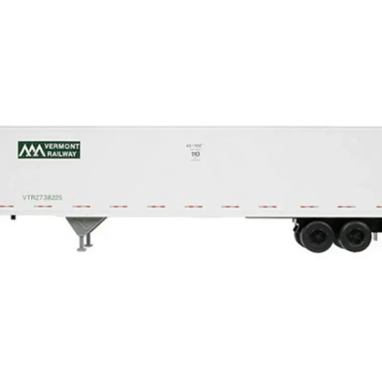 This trailer features two sets of landing gear – fully extended or retracted, hinges and latches, rivets, and rear bumper detail.