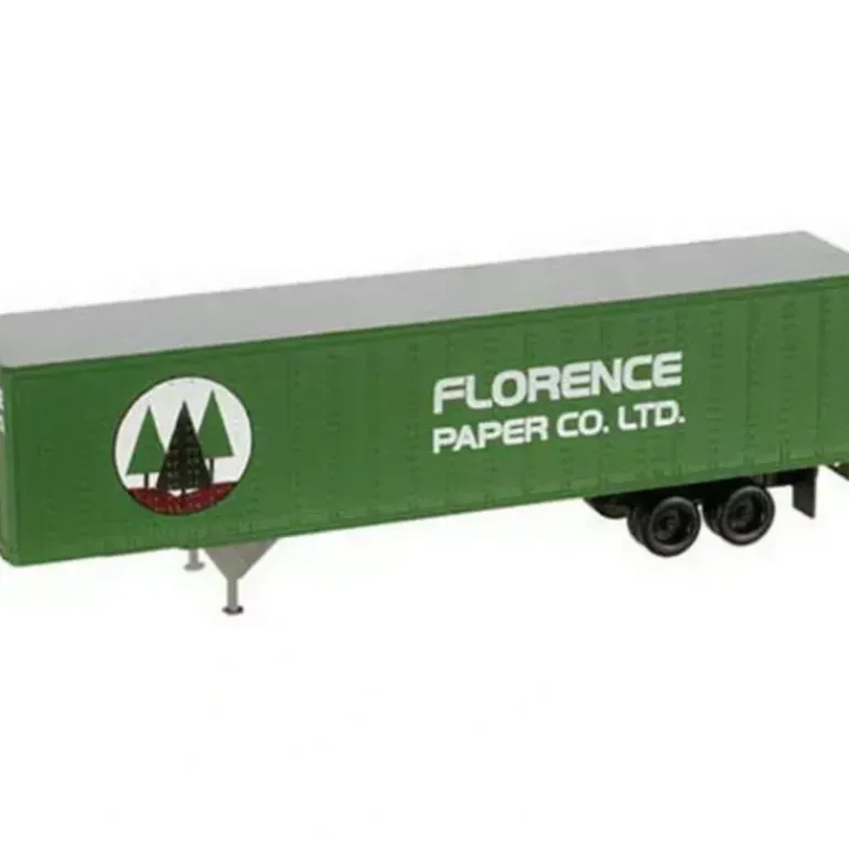 This trailer features two sets of landing gear – fully extended or retracted, hinges and latches, rivets, and rear bumper detail.