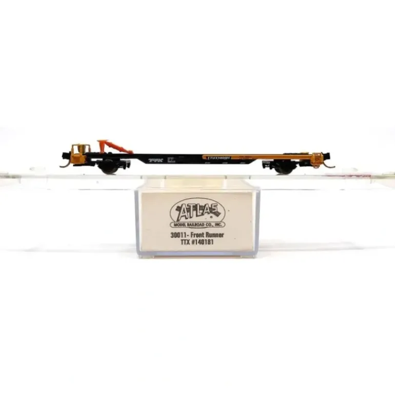 Here is an Atlas 30011 N Scale TTX Front Runner With Trailer #140181. This car features attractive decoration, separately applied details, accurate painting and lettering, and rapido couplers.