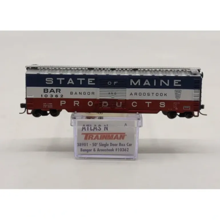 Here is an Atlas 38901 N Scale BAR 50′ Boxcar #10362. This car features realistic Accu-mate knuckle couplers, prototypically-accurate paint and lettering, and lots of underframe and end detail.