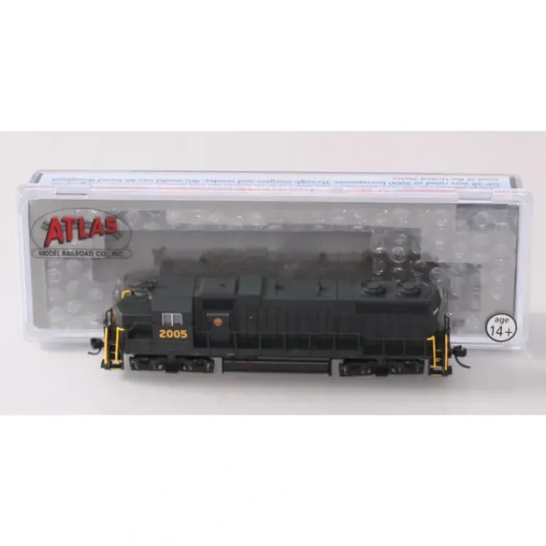 Here is a Atlas 40000261 N Scale PRSL GP38 Diesel Locomotive Low #2005 w/DCC. This locomotive features directional lighting, walkway safety tread, blackened metal wheels, scale speed motor, factory equipped with AccuMate knuckle couplers, dynamic brakes, DCC equipped and golden white LEDs.