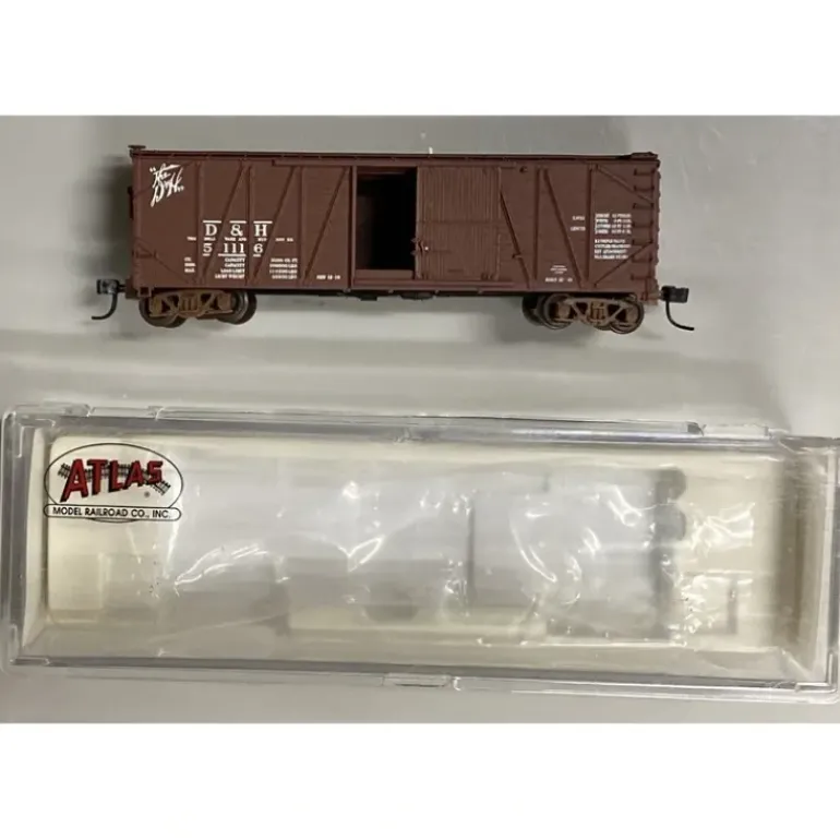 Here is an Atlas 41791 N Scale Delaware & Hudson USRA Single-Sheathed Boxcar #51116. This car features a plastic construction with plastic trucks, wheels, and knuckle couplers.