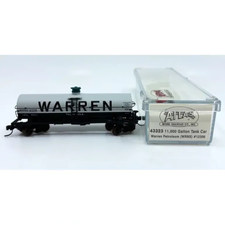 Here is a Atlas 43323 N Warren Petroleum (WRNX) 11,000 Gallon TANK CAR #12306. Features include: plastic body, trucks, and couplers.