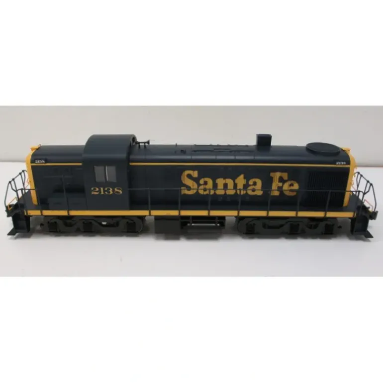 Here is an Atlas 4581 O Gauge Sasnta Fe RSD4/5 Diesel Locomotive #2138. This locomotive features a stamped metal frame, plastic shell, die cast trucks, operating knuckle couplers, TMCC with RailSounds, operating headlamp, metal 3-rail wheels and axles.