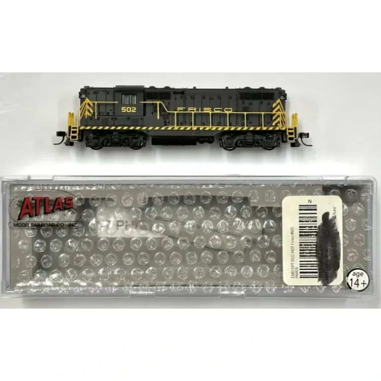 Here is an Atlas 48275 N Scale Frisco GP-7 Powered Diesel Locomotive #502. Introduced in 1949, the Electro-Motive 1500hp GP-7 combined the machinery of the F7 with a hood-type carbody that offered high visibility and easy engine access. The GP-7 was used in pulling every conceivable type of train and was sometimes substituted for part of a set of cab units. The GP-9 utilized a 1750hp engine and was visually similar to the GP-7.