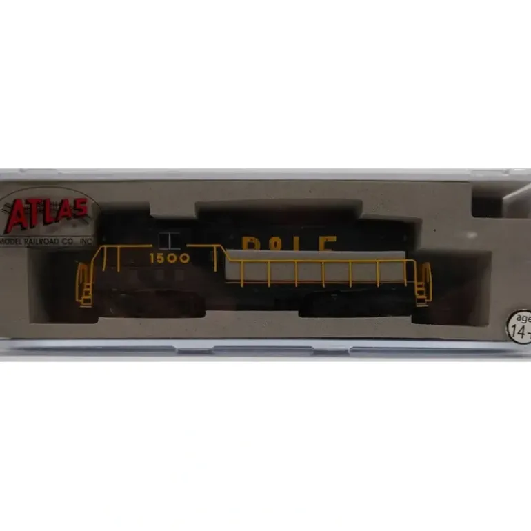 Here is an Atlas 48282 N Scale Pittsburgh & Lake Erie GP-7 Diesel Locomotive #1500. This locomotive features a durable plastic construction, metal wheels, plastic trucks, detailed trimming & knuckle couplers. Introduced in 1949, the Electro-Motive 1500hp GP-7 combined the machinery of the F7 with a hood-type carbody that offered high visibility and easy engine access. The GP-7 was used in pulling every conceivable type of train and was sometimes substituted for part of a set of cab units. The GP-9 utilized a 1750hp engine and was visually similar to the GP-7.