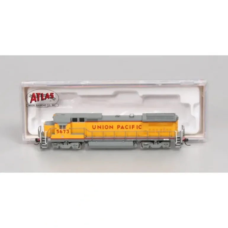 Here is an Atlas 48725 N Scale Union Pacific Dash 8-40B Diesel Locomotive #5673. Features include plastic construction, dual motors, knuckle couplers, plastic trucks, metal wheels and axles.
