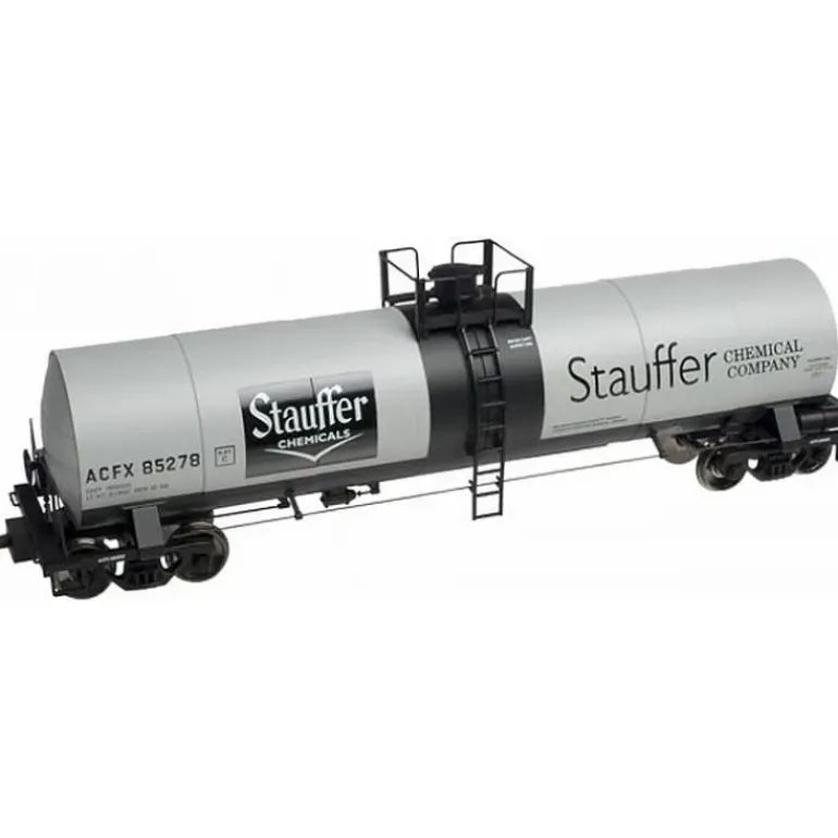 This is Atlas N Scale Ready-to-Run ACF 17,360-Gallon Tank Car – Stauffer/ACFX #85285. Features: Separately-applied brake detail Finely molded handrails Tank fittings, safety placards and metal safety bars 100-ton roller-bearing trucks with AccuMate couplers Accurate painting and lettering. Additional Information: Just like in HO, our high quality, ready-to-run N scale tank car is modeled after American Car and Foundry’s insulated general service tank car designed primarily for transporting chlorine.