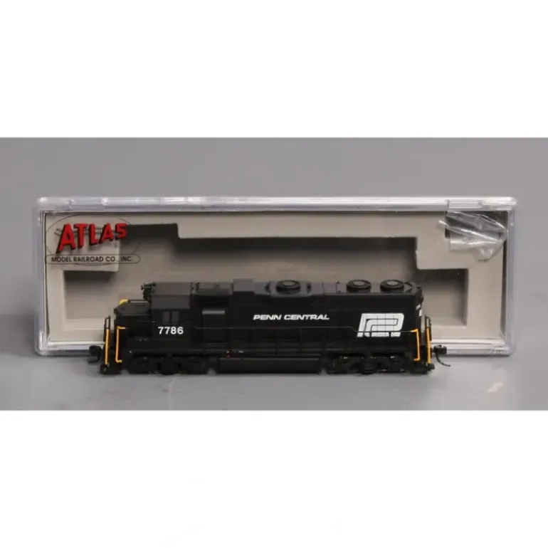 Atlas’ high quality N Scale locomotive is modeled after Electro Motive Division’s 2000 horsepower GP-38 diesel introduced in the late 1960s and built through the early 1970s and is still in service today throughout North America. The GP-38 is usually identified by its two radiator fans located on top of the long hood and two small exhaust stacks. The GP-40 was produced by the Electro Motive Division in the late 1960s and early 1970s, the GP-40 was a 3000 horsepower locomotive best characterized by the three full size radiator fans on the rear of the roof.