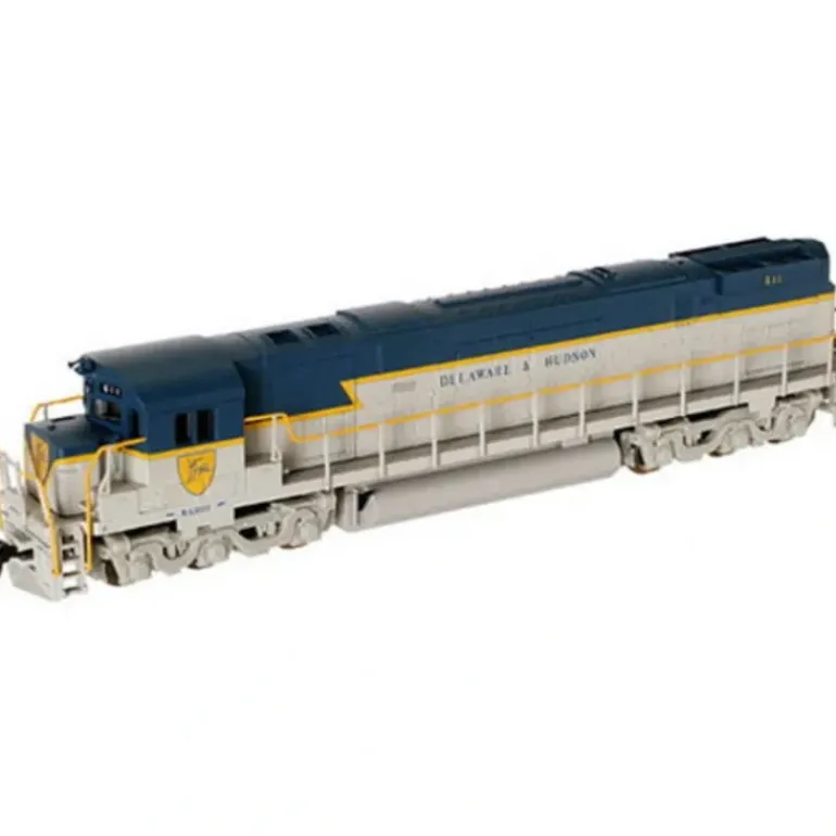 Here is an Atlas 54020 N Scale Delaware & Hudson C-628 Phase 1 Diesel Locomotive #601. Primarily used for heavy-haul road freight service throughout the US, the C-628 generated a total of 2,750 hp, and was part of the American Locomotive Companys (ALCO) Century Locomotive Line. A total of 185 units were built by ALCO for railroads in the US, Mexico and Australia between 1963 and 1968. This locomotive features a scale speed motor with low friction drive, directional lighting, golden white LEDs, blackened metal wheels, factory installed AccuMate magnetic knuckle couplers, and painted safety rails.